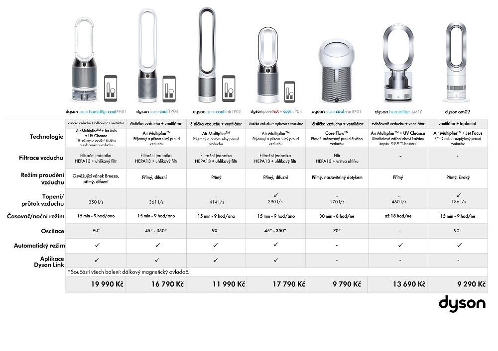 Vyberte si z řady čističek vzduchu Dyson tu, která vám bude vyhovovat: