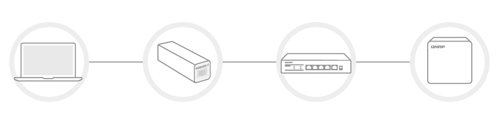 Model TS-262 disponuje 2,5GbE portem RJ45 LAN s podporou stávajících kabelů CAT5e, jenž přináší obrovské zvýšení rychlosti datových přenosů. Pokud přitom vaše PC připojení 2,5GbE nepodporuje, lze využít adaptér QNAP USB 3.2 Gen 1 na 5GbE (název modelu: QNA-UC5G1T).
