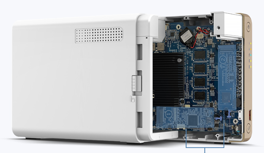 Sázka na dvoujádrový procesor Intel Celeron N4505 s taktem až 2,9 GHz a podporou disků SATA 6 Gb/s znamená rychlost za každé situace, čemuž přispívá i šifrovací modul Intel AES-NI pozitivně se podepisující i na bezpečí vašich dat. Do slotů M.2 PCIe pak lze instalovat NVMe SSD pro akceleraci mezipaměti, stejně jako je možné aktivovat funkci Qtier pro automaticky stupňované úložiště.