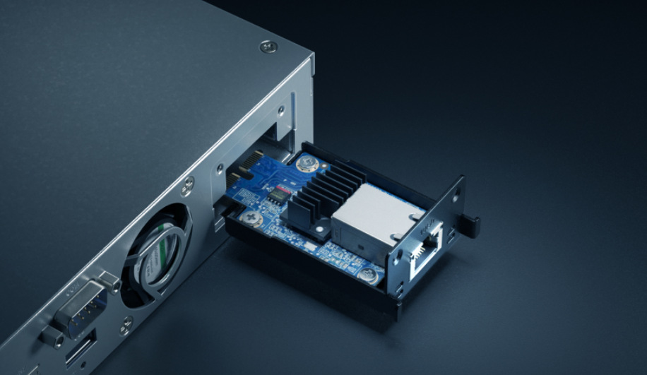 RackStation RS422+ přináší bohaté možnosti připojení k síti pro snadnou integraci do IT prostředí. Dokonce lze rozšiřovat možnosti NASu prostřednictvím přídavných modulů „plug-and-play“. K dispozici jsou dva vestavěné gigabitové porty s podporou funkce přepnutí služeb při selhání sítě a vyrovnávání zátěže. Můžete se ale rozhodnout pro 10GbE prostřednictvím dodatečného modulu E10G22-T1-Mini.