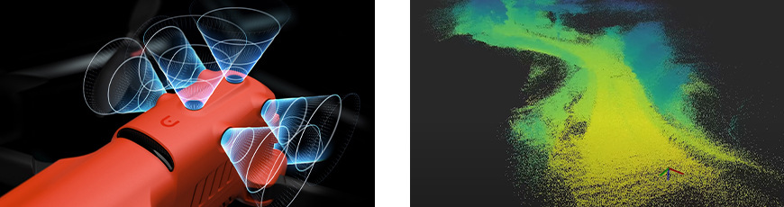 Dron Autel EVO II je vybaven 12 obrazovými čidly, které skenují prostor ve všech směrech a v reálném čase vytváří mapu okolního prostředí. Dron tak již od 40 m detekuje překážky a automaticky se jim vyhýbá. Pilot může na displeji dálkového ovladače sledovat okolní překážky znázorněné barevnými ukazateli. Pokud by mělo dojít ke kolizi, dron sám zastaví.