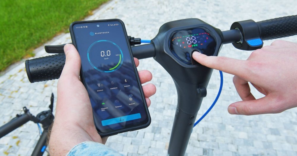 Bezdrátová technologie Bluetooth vám umožní propojit elektrickou koloběžku s aplikací v chytrém telefonu. Po úspěšném spárování máte možnost koloběžku pohodlně ovládat z pohodlí velkého displeje svého telefonu. Můžete zde sledovat stav baterie, aktuální rychlost, upravit tempo a podobně.