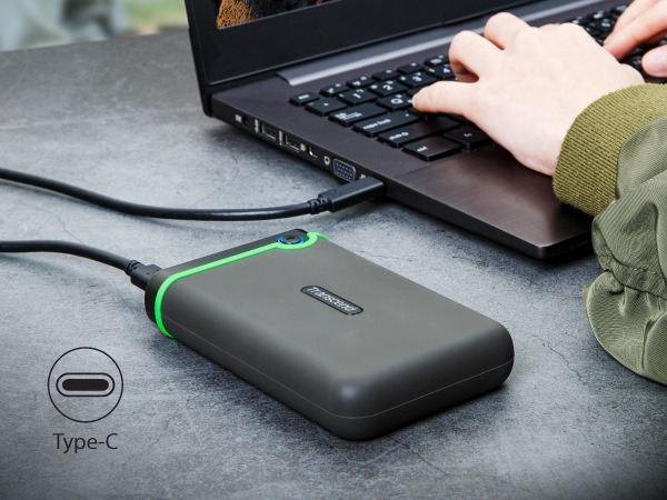 S externím diskem StoreJet 25M3C budou vaše data v bezpečí za každé situace vzhledem k tomu, že nabízí odolnost dle armádních standardů MIL-STD-810G. Přináší ale i moderní výbavu v čele s portem USB-C, díky němuž dosahuje přenosových rychlostí až 5 Gb/s.