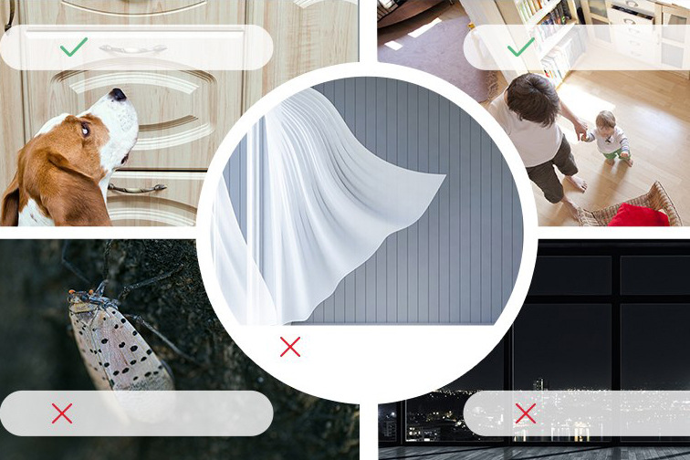 Inteligentní detektor pohybu dokáže rozpoznat člověka nebo zvíře. Aby nedocházelo k nadměrnému množství falešných poplachů, detektor efektivně ignoruje pohyb hmyzu, záclon při větru nebo světel.