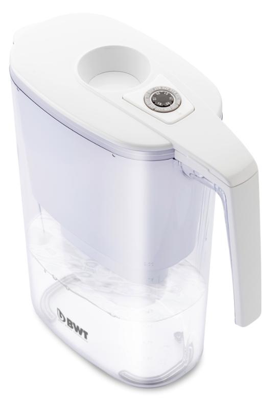 Čerstvou vodu se sníženým obsahem chlóru si s konvicí BWT můžete užívat každý den. Na víku konvice je mechanický indikátor výměny filtru, který Vám připomene čas pro výměnu filtrační vložky. Balení obsahuje filtr a ruční odšťavňovač na citrusy.