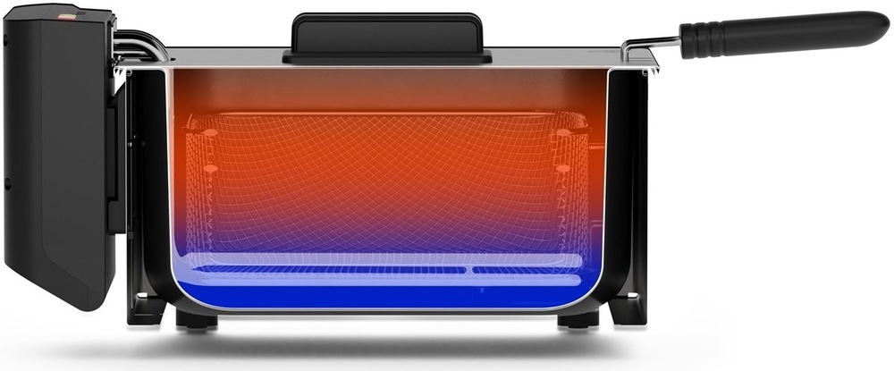 horkovzdušná fritéza • příkon 2 000 W • objem fritovacího koše 3 l • analogový ovládací panel • regulace teploty • ochrana proti přehřátí • chladná zóna • chladné opláštění • světelná signalizace • nepřilnavý povrch • příslušenství lze mýt v myčce nádobí