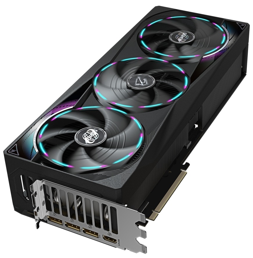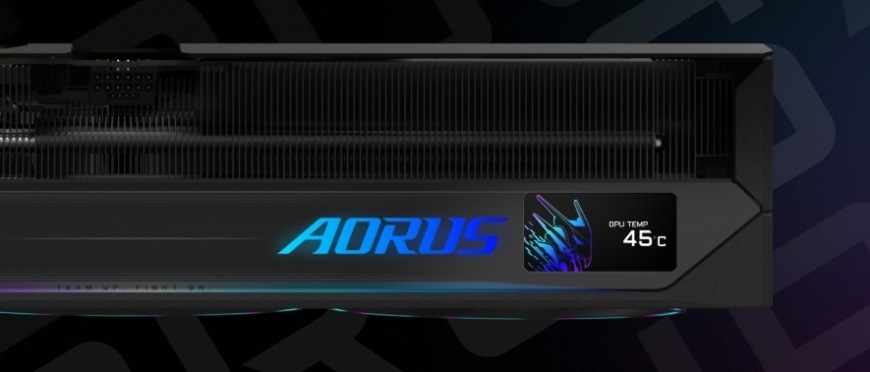 Grafická karta zaujme nejen výkonem, ale i vizuálním provedením. Dynamické RGB Halo osvětlení, inspirované vířivými vzory kolem ventilátorů, vytváří fascinující hru světla a pohybu. Čelní strana karty je zdobena vrstvenými texturami s různými povrchovými úpravami, které kombinují pevnost a eleganci. RGB Halo s ikonickým kruhovým osvětlením ventilátorů přináší působivý vizuální zážitek, s možností volby efektů nebo synchronizace s dalšími zařízeními prostřednictvím Gigabyte Control Center. Dalším prvkem je LCD Edge View, který umožňuje zobrazovat informace o grafické kartě, oblíbené texty, obrázky nebo GIFy.