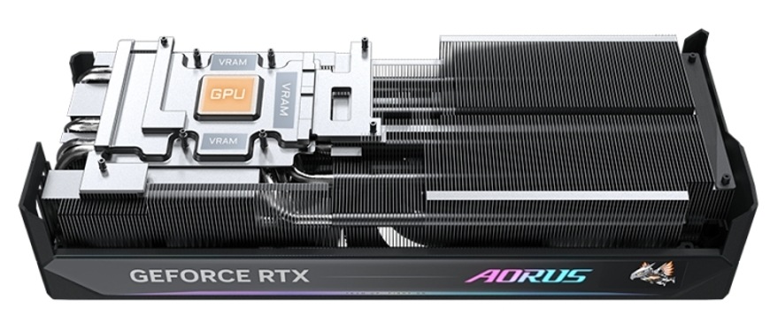 Grafická karta je vybavena velkou parní komorou, která přímo přiléhá k GPU, a pokročilými kompozitními měděnými heatpipe, jež rychle odvádějí teplo z GPU a VRAM do masivního chladiče. Díky optimalizovanému velkému chladiči je zajištěn efektivní odvod tepla při vysokém i nízkém proudění vzduchu, a to při minimalizaci hlučnosti. Pro zvládnutí vysokých tepelných nároků moderních GPU je použita kompozitní kovová teplovodivá pasta, která kombinuje vysokou tepelnou vodivost tekutého kovu a snadnou aplikaci silikonové pasty. Tato kombinace technologií poskytuje stabilní a spolehlivý tepelný management, což zajišťuje optimální výkon i při extrémním zatížení.