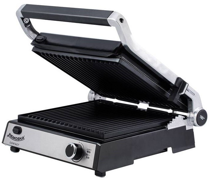 Milujete zdravé stravování a čerstvé grilované pochoutky? Pak je kontaktní gril Remoska® Contact RE21003 s příkonem 2 000 W přesně pro vás! Kontaktní gril 3 v 1, který je vhodný pro přípravu masa, panini i lahodné grilované zeleniny, má vyjímatelnou odkapávací nádobu o objemu 0,2 l a termostat s regulací teploty 80–220 °C. Bezpečnost zajišťuje světelná signalizace provozu i ohřevu, možnost uzamčení víka i bezpečnostní tepelná pojistka.