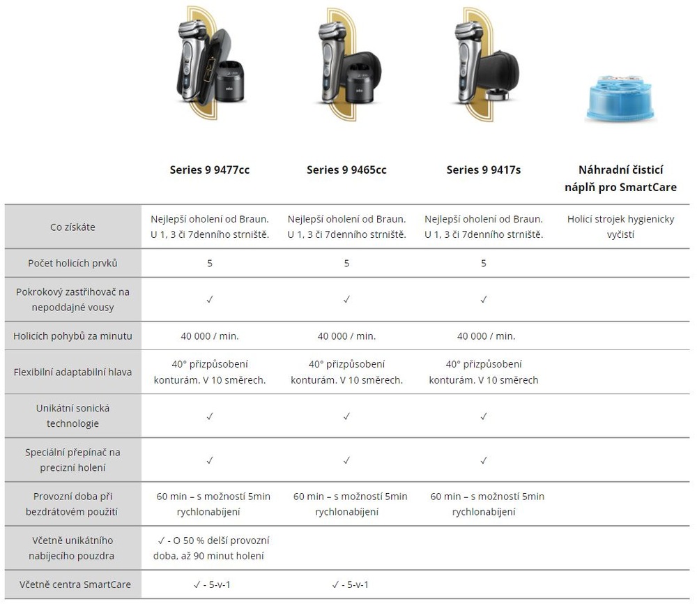 Braun Series 9 PRO 9465cc, šedáHolicí strojek Braun Series 9 PRO 9465cc patří mezi pokročilou řadu holicích strojků vyrobených v Německu. Je vybaven hlavicí ProHead, která má celkem 5 holicích prvků. Planžety Braun jsou navrženy tak, aby oholily vousy na délku kratší než 0,05 mm. Během chvilky tak proměníte v dokonale hladké tváře i několikadenní strniště.