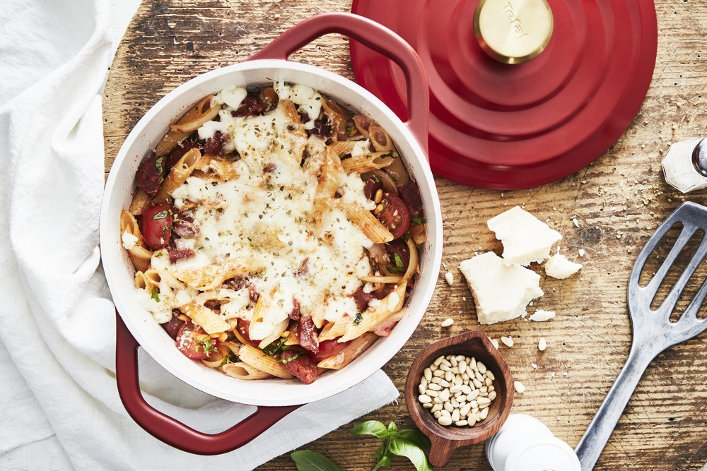 Kastrol je vyrobený z robustního litého hliníku s odolným keramickým povrchem, což umožňuje pravidelné každodenní používání. Jeho nadčasový design navíc umožňuje servírování přímo na stůl.