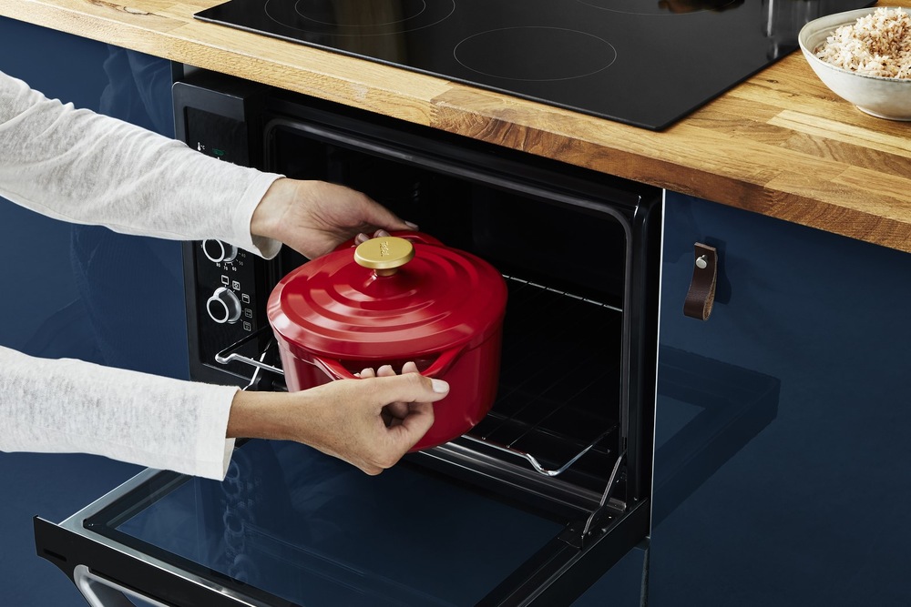 - Funguje na všech sporácích, včetně indukce, a lze ho použít v troubě