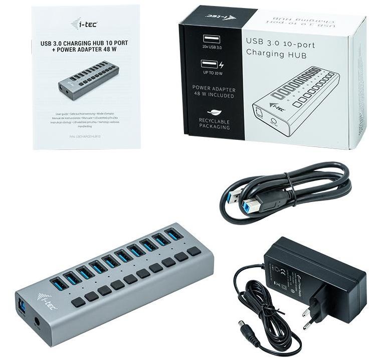 i-tec 10x USB 3.0, 48W, stříbrná