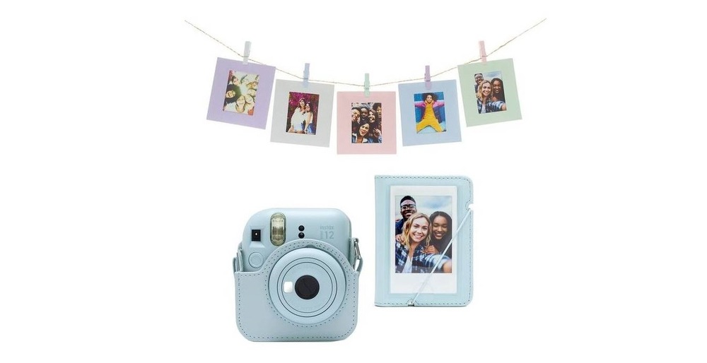 Dárkové balení fotoaparátu Fujifilm Instax mini 12 obsahuje vše, co můžete potřebovat pro okamžité používání zařízení. Mimo samotný fotoaparát v modrém provedení v balení najdete také kožené pouzdro a obal na fotografie ve stejném barevném provedení, řemínek na ruku, 2× AA baterie potřebné pro chod fotoaparátu a dvě základní sady filmů, ve kterých se dohromady nachází 20 listů pro vaše fotografie. V balení naleznete také rámečky v líbivých barvách, do kterých si můžete pořízené fotografie umístit, a pomocí kterých zútulníte vaši místnost.