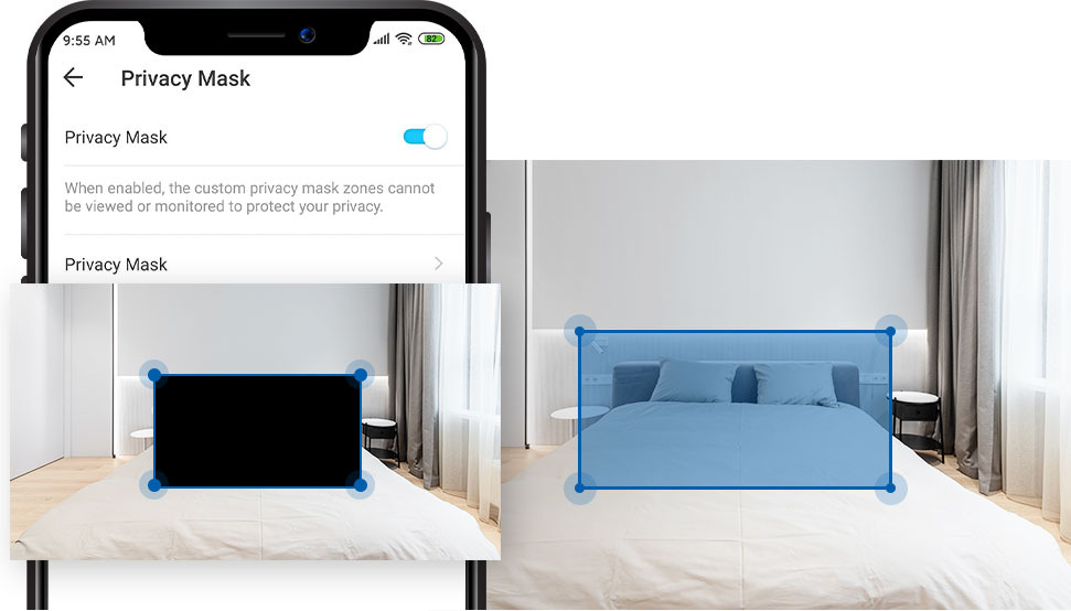 Chraňte své soukromí před zneužitím. Kamera vám umožní nastavit soukromé zóny, které se v záznamu neobjeví, aby nehrozilo jejich zneužití.