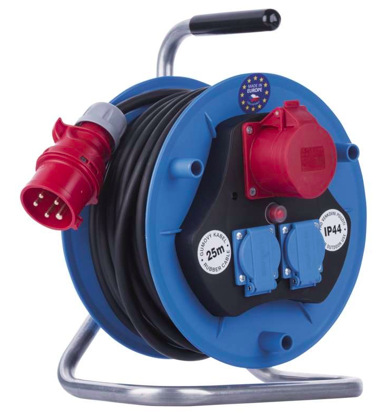 prodlužovací kabel na bubnu • 1× zásuvka 400 • 2× zásuvka 230 • průřez vodiče 1,5 mm² • max. zatížení navinutého 230 V: 4,35 A / 1 000 W • max. zatížení při rozvinutí 230 V: 13 A / 3 000 W • max.…