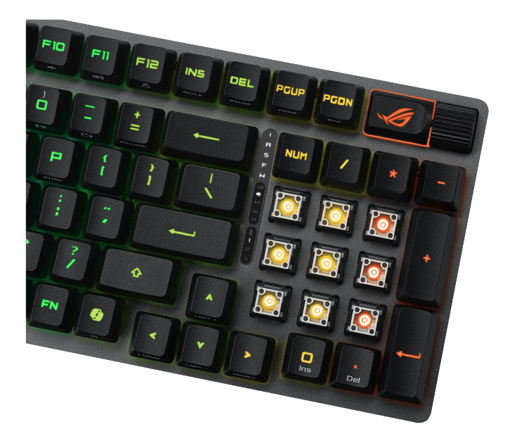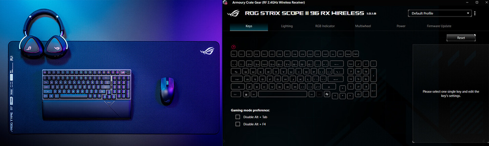 Předem namazané optické spínače ROG RX Red nabízí jistý stisk s minimálním odporem, konzistentními úhozy bez kolísání, vysokou životností a RGB podsvícení, které si můžete libovolně upravit v doprovodném softwaru Armoury Crate. Samozřejmostí je i přítomnost technologie Anti-ghosting se 100% funkcí Full-Key Rollover, díky které klávesnice spolehlivě detekuje stisk více tlačítek zároveň. I přestože se jedná o zmenšenou 96% klávesnici, nepřijdete o žádnou z kláves. Pomocí funkční FN klávesy můžete vyvolávat širokou škálu zkratek včetně zkratek pro ovládání hlasitosti nebo hudby.