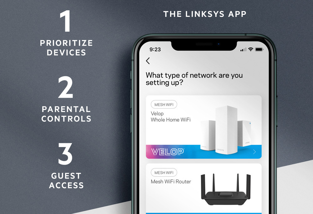 Pro zprovoznění systému nemusíte žádné ovladače zdlouhavě instalovat. Stačí, když si stáhnete do telefonu aplikaci Linksys a budete postupovat krok za krokem podle návodu. V aplikaci si následně snadno nastavíte prioritní zařízení, aktivujete rodičovskou kontrolu, založíte přístup pro hosty a mnoho dalšího.