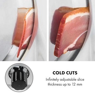 Máte rádi dokonale nakrájené plátky uzenin, masa, pečiva anebo zeleniny? Pak si pořiďte kráječ Klarstein Carpaccio, se kterým si nastavíte šířku plátků potravin od 0 do 12 mm, přesně na míru. Produkt má kvalitní nerezový nůž o průměru 250 mm, který je schopen krájet jídlo až do velikosti 200 × 155 mm. Nůž je vyměnitelný, a aby byl stále ostrý, má produkt integrovanou brusku. Maximální rychlost při práci zajišťuje vysoký výkon 240 W a 282 otáček za minutu.