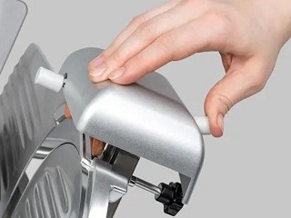 Spotřebič má vysokou stabilitu na kuchyňské lince díky protiskluzovým nožičkám. Zároveň je opatřen hned několika bezpečnostními prvky, jako je uzamykatelné tlačítko na ochranu nože a i uzamykatelné tlačítko brusky. Velice snadný je i provoz, stačí jen stisknout tlačítko na zapnutí. Maximálně bezpečné je i držení potravin při řezání, a to díky zádržnému hrotu z ušlechtilé oceli. Produkt vám tak během pár chvil naservíruje úhledné plátky jídla prakticky bez práce.