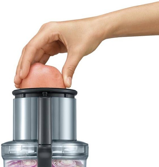 Hlavní vyjímatelná plastová miska na zpracování potravin dosahuje objemu 2,5 l, k dispozici je také malá 1l miska. Potraviny lze vkládat do robotu pomocí plnicích otvorů tří velikostí z nichž jeden je extra široký a pojme i velké kusy potravin. S protlačením surovin skrz otvor pomůže velký přítlak. Přidávat drobné nebo sypké potraviny aniž by bylo třeba přerušovat chod motoru je možné přes malý přítlak. Tento slouží současně jako odměrka. Bezpečnost a stabilitu robotu při práci zajistí protiskluzové nohy.