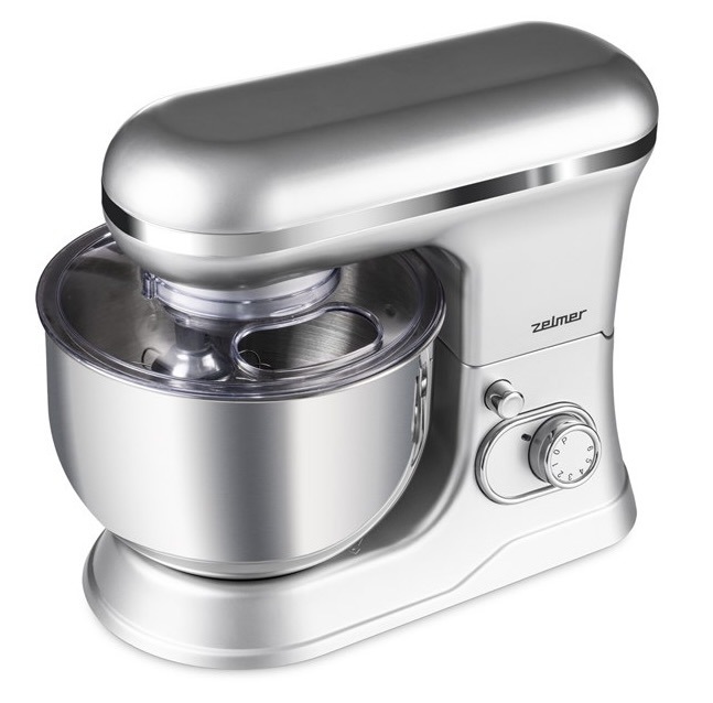 Hledáte spolehlivého pomocníka, který vám pomůže s vašimi kuchyňskými pracemi a nebude vás stát celou vaši výplatu? Pak je tady Zelmer ZKR1360, kuchyňský robot s příkonem 1 200 W a objemem nádoby 5 l. Ať už potřebujete pomoc s hnětením, mísením, šleháním, nebo dokonce výrobou zmrzliny, poskytne vám spolehlivý výkon. Disponuje 6 rychlostmi a funguje na principu planetárního systému míchání, což znamená, že všechny vložené suroviny opravdu důkladně promísí. Pro okamžité využití nejvyšší rychlosti je připravena pulsní funkce. V balení spolu s robotem obdržíte bohaté příslušenství, které čítá dvě mísy, jednu 5l nerezovou a druhou 4,5l plastovou, dále pak hnětací hák, šlehač, šlehací metlu, silikonový šlehač, celokovový šlehač a sadu na výrobu zmrzliny.