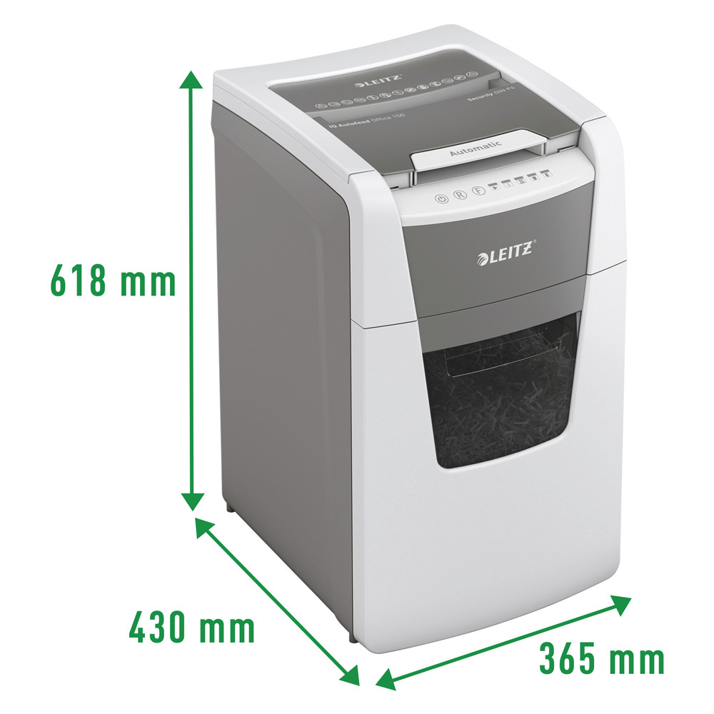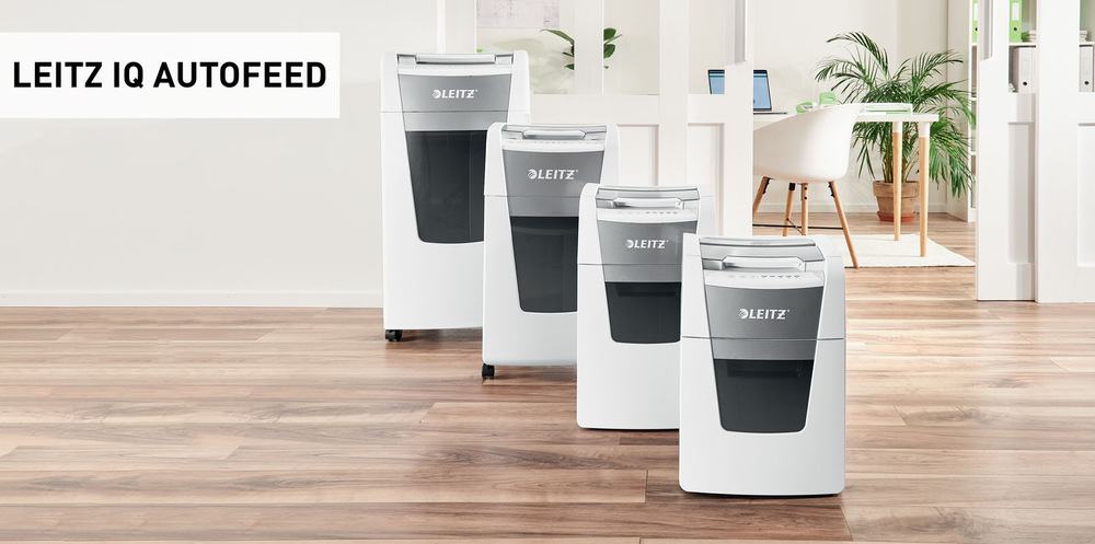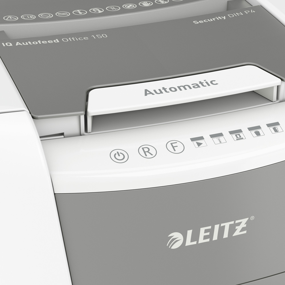 Skartovačku s automatickým podavačem papíru Leitz IQ Autofeed 150 P4 ocení každý zaneprázdněný pracovník v kanceláři. Citlivé dokumenty tento přístroj skartuje tiše a zcela automaticky – stačí vložit stoh papíru (až 150 listů A4) a zavřít víko. Zvládne 30minutový nepřetržitý chod a umožňuje i manuální plnění až po 8 listech papíru najednou. Poradí si přitom i s kancelářskými sponkami a drátky ze sešívaček, není tedy nutné zdržovat se jejich odstraňováním. Stejně dobře navíc zvládne znehodnotit i plastové kreditní karty.
