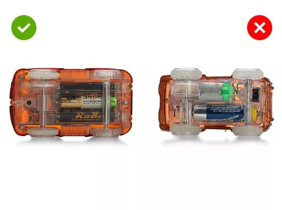 Autíčka Magic Tracks mají bezpečně zabudované baterie. Dostanete se k nim pouze pomocí šroubováku.