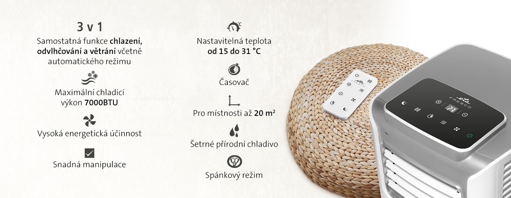- 3 funkce - ochlazovač vzduchu, odstraňovač vlhkosti a ventilátor