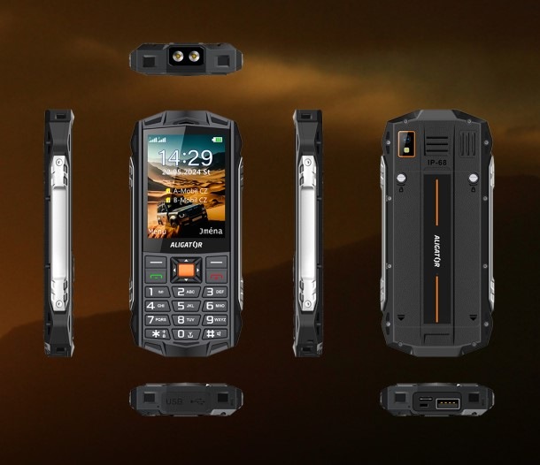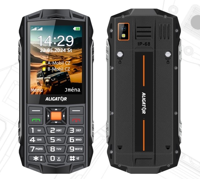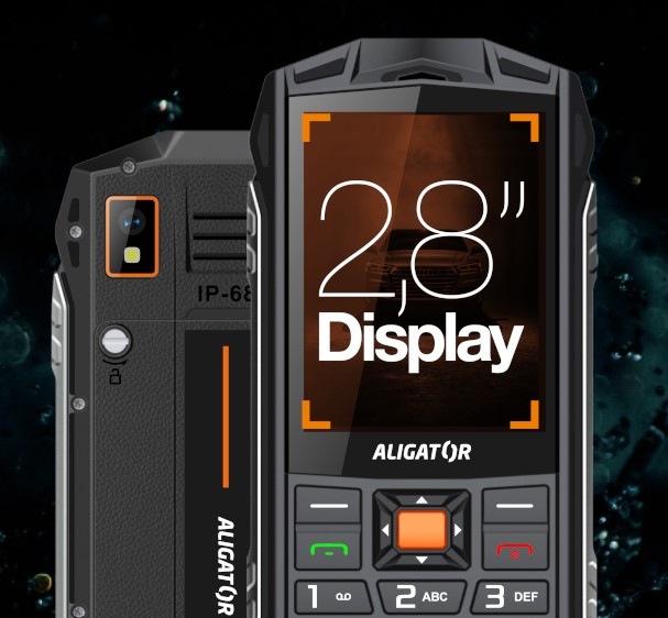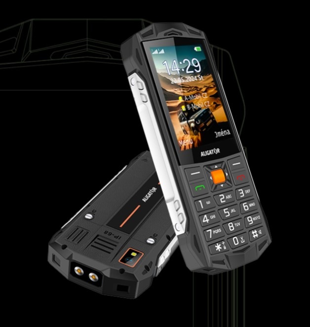 Spolehlivý parťák do každého počasí – to je Aligator R45 eXtremo! Tento odolný telefon s robustní konstrukcí a certifikací IP68 zvládne i ty nejnáročnější podmínky. Jeho velký 2,8" displej a pohodlná klávesnice zajišťují snadné ovládání i v rukavicích. Výkonná baterie s kapacitou 2 500 mAh vydrží až 52 dní v pohotovostním režimu nebo 12 hodin telefonování. Skvěle poslouží také jako powerbanka pro vaše ostatní zařízení. Integrovaná svítilna se dvěma LED diodami vás nikdy nenechá ve tmě. Díky funkcím jako SOS volání, Bluetooth, FM rádio a slot pro microSD, microSDHC a microSDXC kartu je Aligator R45 eXtremo nejen odolný, ale také praktický. Jeho stylový design s kovovými bočnicemi a černo-oranžovou barvou podtrhuje jeho robustní charakter.