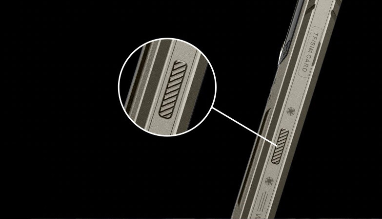 Na boční straně najdete tlačítko, u kterého si můžete zvolit funkci dle vlastních preferencí. Snadno jím vytvoříte screenshot obrazovky, začnete nahrávat zvuk, rozsvítíte svítilnu, zavoláte na přednastavené SOS číslo nebo spustíte podvodní kameru.