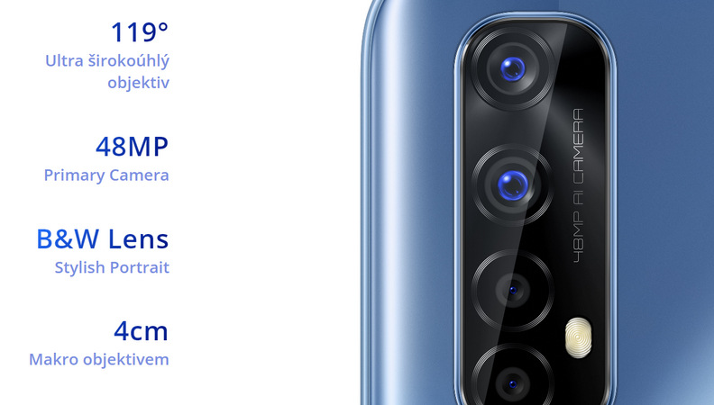 Na zadní straně objevujeme čtyřnásobný kamerový systém s umělou inteligencí a vysokým rozlišením až 48 Mpx.