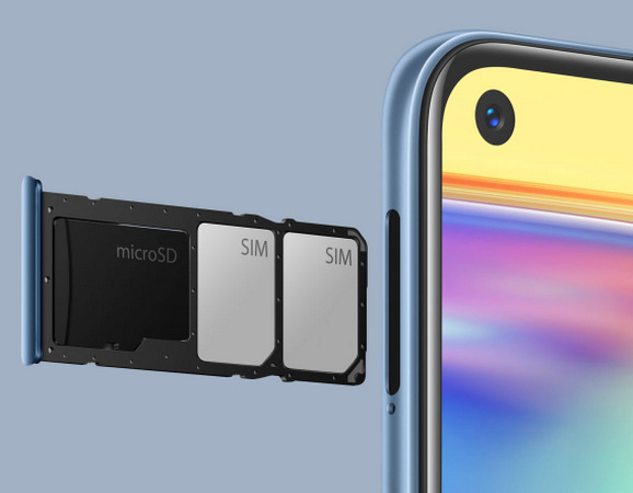 Telefon nabízí slot hned pro tři karty. To znamená, že současně lze využívat jak dvě SIM karty, tak i rozšířit vnitřní úložiště pomocí paměťové karty až o 256 GB.