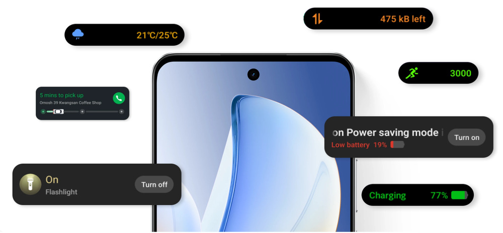 Realme nasadilo oblíbenou technologii Mini Capsule – chytrý prvek, který zobrazuje vybrané notifikace a umožňuje rychlou interakci. Díky tomu máte nejdůležitější informace neustále po ruce.