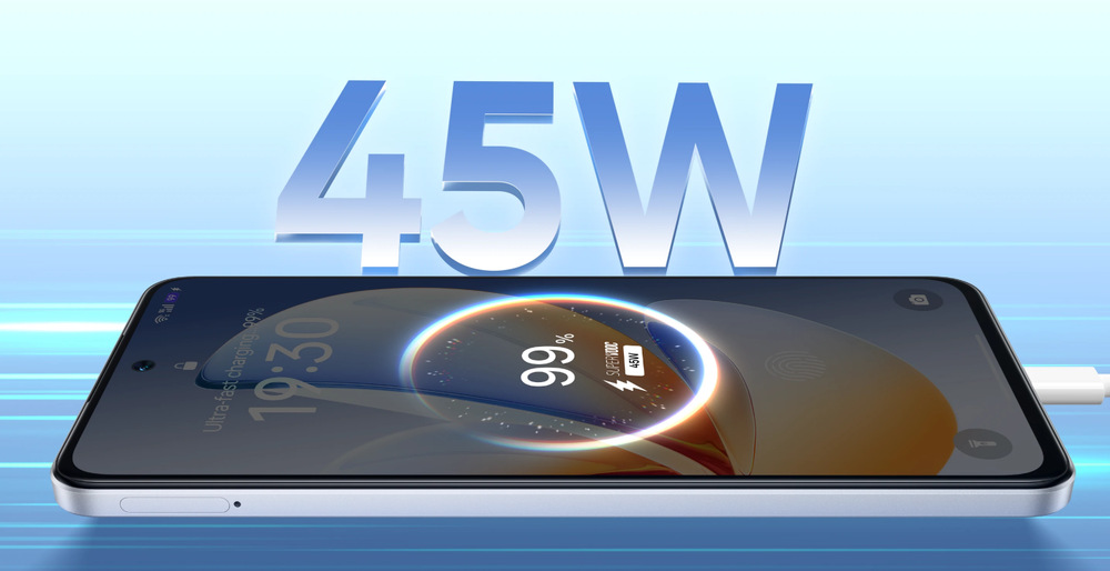 Realme C71 je vybaveno baterií s velkorysou kapacitou 5 830 mAh, která zajistí dlouhou výdrž i při náročnějším používání. Díky 45W rychlonabíjení se navíc dostanete na 50 % už za 36 minut.