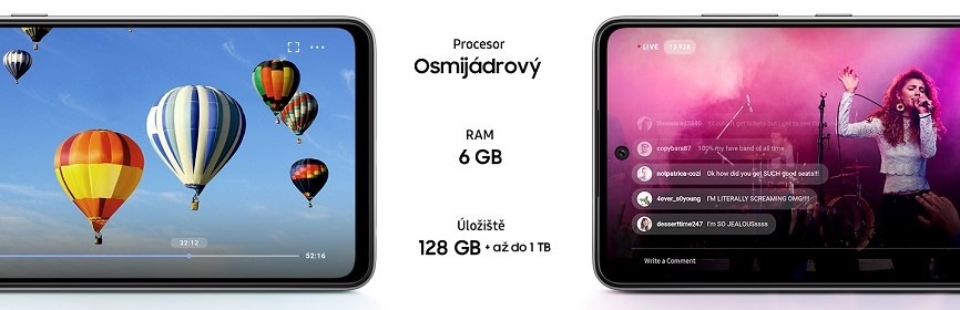 - 6 GB RAM + 128 GB úložiště s možností rozšíření o microSD karty (až 1 TB)