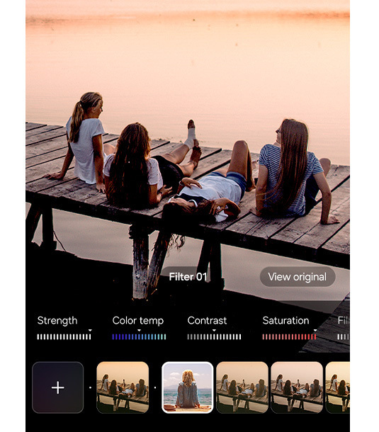Fotografie navíc dokáže vylepšit umělá inteligence Galaxy AI, včetně personalizovaných filtrů a přizpůsobení sytosti barev, jasu a dalších parametrů.
