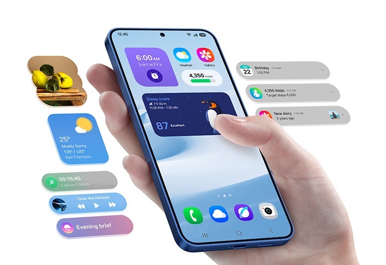 Prostředí je navrženo tak, aby vám usnadnilo orientaci a poskytlo okamžitý náhled na vše klíčové. Panel Now Bar například zajistí přehled o notifikacích i bez odemykání telefonu. K dispozici jsou ale také upozornění od funkce Now Brief, Samsung také rozšířil možnosti úprav domovské obrazovky a výběr widgetů pro ještě větší přizpůsobení vám na míru.