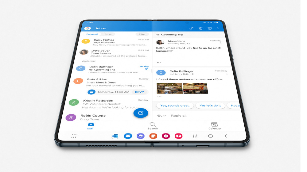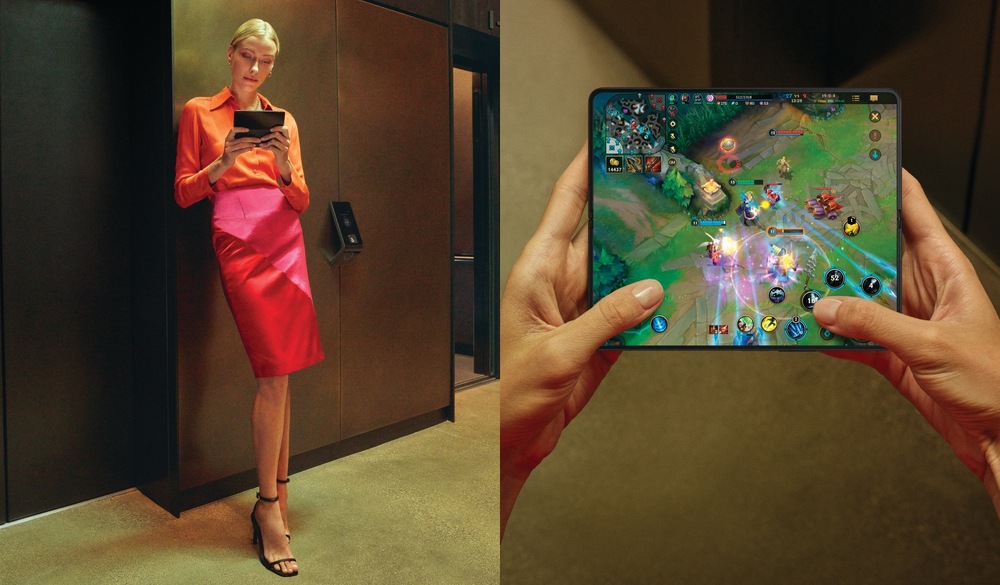 Využijte velkou vnitřní obrazovku na maximum. S chytrými softwarovými vylepšeními je multitasking pohodlnější, než kdy dříve. K dispozici máte mimo jiné hlavní panel, který je podobný těm, jež znáte z počítačových operačních systémů. Užitečná je také funkce App Pair, umožňující spuštění až tří aplikací naráz, a to v předem určeném rozložení. Můžete například vybírat zboží v e-shopu a rovnou výběr konzultovat s přáteli v chatu nebo v průběhu pracovního videohovoru procházet své poznámky. Kreativitě a efektivitě se meze nekladou.