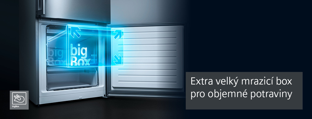 Zamrazte si i velké kousky ovoce nebo masa. Do zásuvky BigBox se bez sebemenších problémů vejdou i celé kousky drůbeže, krůta, kýta, celá pizza nebo velká balení zmrzliny. V mrazničce máte dostatek prostoru skutečně na všechny potraviny, na kterých si rádi pochutnává celá rodina.