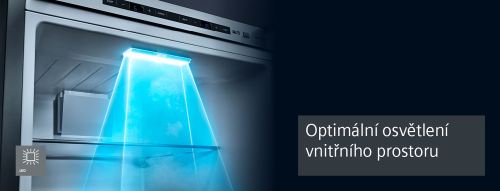 Perfektní LED světla pro rovnoměrné osvětlení celého prostoru. Žádné oslňovaní, jen dokonalý přehled o obsahu mrazničky. Navíc přináší LED osvětlení úsporu energie a delší životnost.