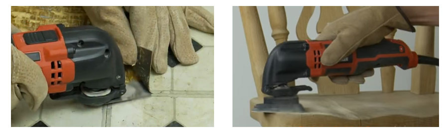 Potřebný výkon přístroje si můžete nastavit pomocí plynulé regulace otáček. Integrované odsávání prachu u brusné desky zamezí prašnosti při používání a odolná robustní konstrukce zajistí dlouhodobou funkčnost výrobku. Toto oscilační nářadí je určeno k různým aplikacím v domácnosti. Můžete jej použít například na škrábání menších ploch, opracování poddajných dlaždic, broušení dřeva, podlahových krytin, kamenů, sádrokartonů. Lze s ním leštit a odstraňovat koroze. Pilový kotouč lze využívat k řezání materiálů ze dřeva, sádry, plastu, sádrokartonu, barevných kovů. Také je vhodný na seškrabování tmelů a lepidel z podlah i odstraňování starých lepených podlahových krytin.