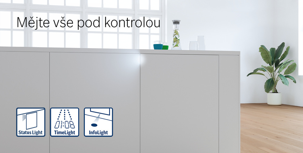 U myčky, která nemá přední panel, je těžké na první pohled zjistit, zda ještě myje. Díky světelné signalizaci vás myčka Bosch SMV4HVX00E sama upozorní, kdy už mycí proces skončil nebo jestli stále ještě probíhá.