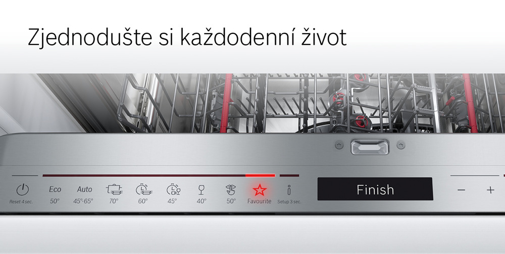 Pomocí funkce Oblíbený program si můžete snadno uložit kombinaci vašeho nejpoužívanějšího programu a přídavné funkce. Naprogramované nastavení pak jednoduše spustíte jedním dotekem. Ještě větší ulehčení mytí nádobí.