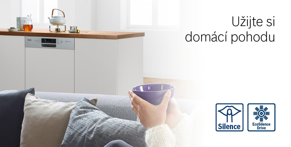 Máte rádi nerušený odpočinek? S novými technologiemi myčky Bosch a motoru EcoSilence Drive si můžete dopřát klidnou chvilku i během doby, kdy myčka myje. Motor s vysokým výkonem je obzvláště tichý a navíc šetří energii.