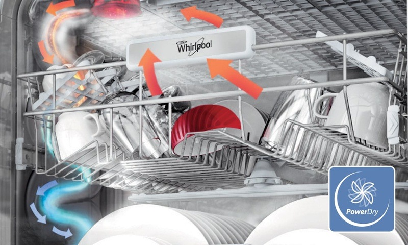 Po skončení mytí se myčka automaticky přepne do fáze sušení. K té používá technologii Power Dry, která zajistí skvělé výsledky sušení u každého typu nádobí. Utěrku můžete nechat pověšenou na poutku, z myčky stačí nádobí vzít a rovnou schovat do skříňky nebo znovu použít.