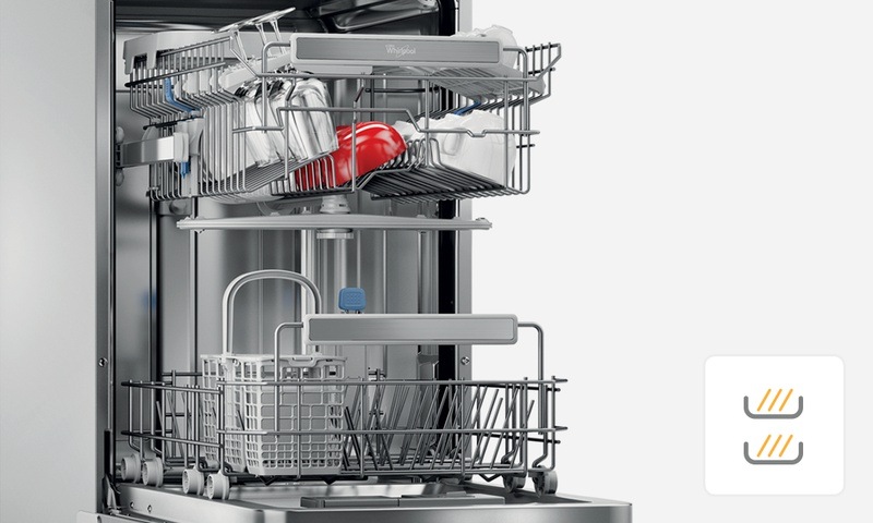 Získejte další cenný prostor navíc a využijte interiér spotřebiče na maximum. Do myčky lze přidat dodatečný třetí koš, který je určený pro drobné nádobí a příbory. Budete je tak mít oddělené od hrnců, talířů a skleniček, aby nedošlo k jejich poškrábání např. při pohybu nožů v myčce.