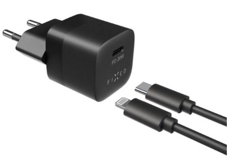 Nabíječka do sítě FIXED Mini USB-C PD 20W, MFI + Lightning kabel 1m (FIXC20M-CL-BK) černá