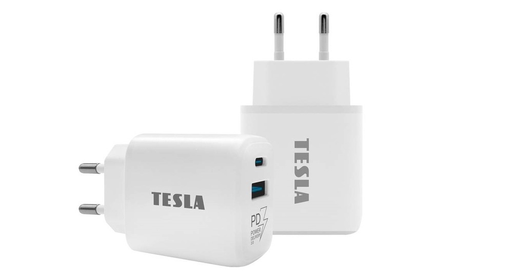 Tesla Power Charger T220, 1×USB, 1× USB-C 25 W PD 3.0 (8595689802301), bílá
