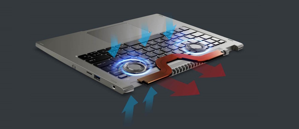 Systém chlazení TwinAir je navržen na architektuře Vortex Flow, který zlepšuje výkon notebooku až o 75 %. Systém s dvojicí tepelných trubek a ventilátorů efektivně odvádí teplo z těla notebooku a napomáhá udržovat optimální teplotu, ať pracujete, nebo jen sledujete váš oblíbený film.